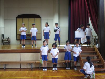 今日の6時間目も「学びと力の発表会」の通し練習を舞台で行いました。