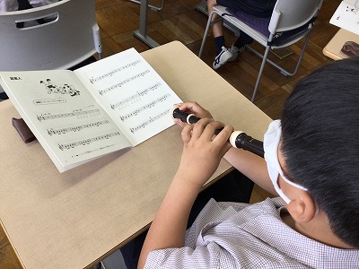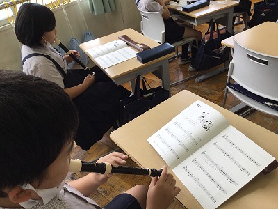 それでも、曲の感じは違います。途中でゆっくりになったり、速くなったり…また、ひと呼吸おいて始まったり…と、伴奏に合わせて3年生の吹く「シ」の音の表情がいろいろに変わります。
