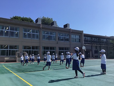 木曜日の朝、日直さんの元気なかけ声で、準備体操が始まりました。