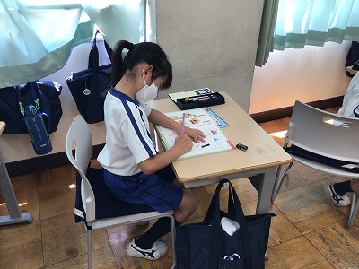 まずは、鉛筆の持ち方の確認から始めました。姿勢と正しい持ち方を確認し、きれいな字を書く練習をしました。