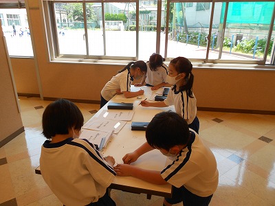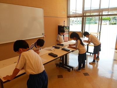 舞台発表で使う小道具を作っています。 クイズや説明のキーワードは大きく書いて、見やすく仕上げようとがんばっています。