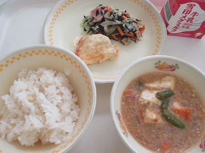 6/9水【礼拝「布施」・給食(マーボー豆腐 他)】