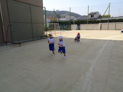 今日は、根っこマラソン・英語・体育・図工と活動が多い一日でした。