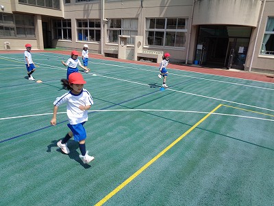 高学年に負けないぐらい一生懸命走っていました。