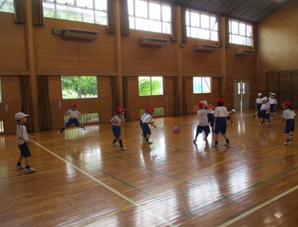 教室でビンゴゲームをした後、体育館で「ドッジボール」をしました。