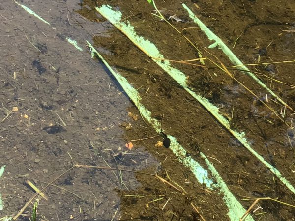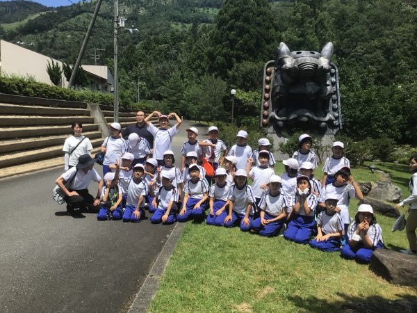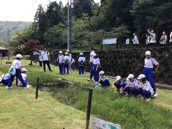 みんなでロッジのビオトープに行きました。そこは、オタマジャクシの学校でした。