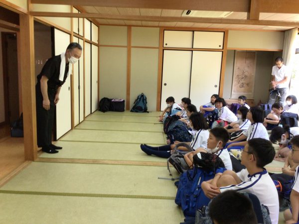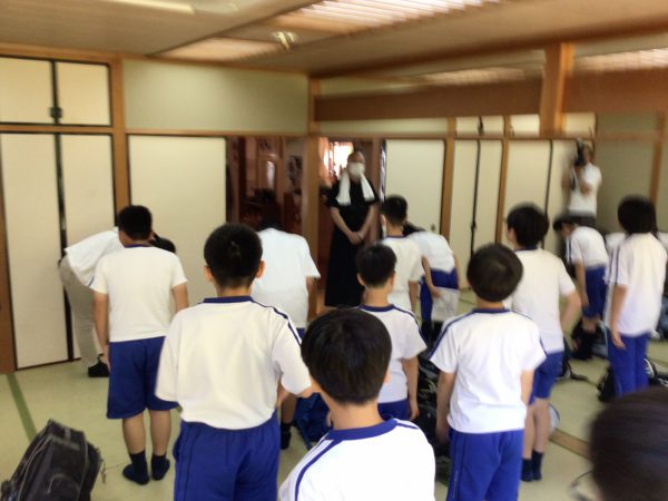 予定の時刻に到着しました。入所式です。ロッジの方にご挨拶しました。
