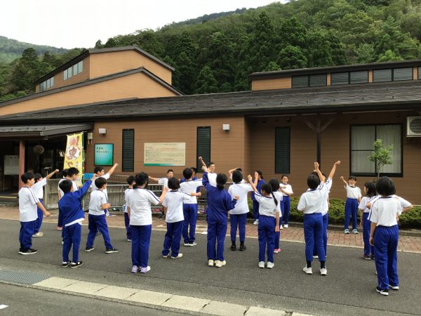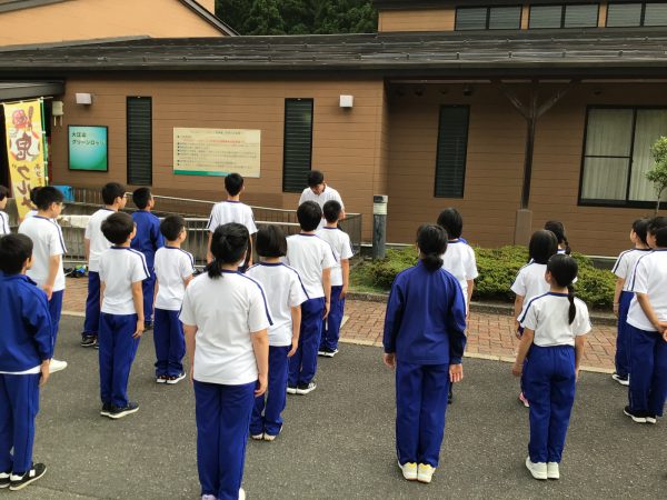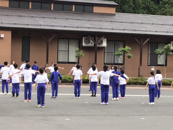 朝の集いでは、生活保健係が、ラジオ体操をリードしてくれました。
