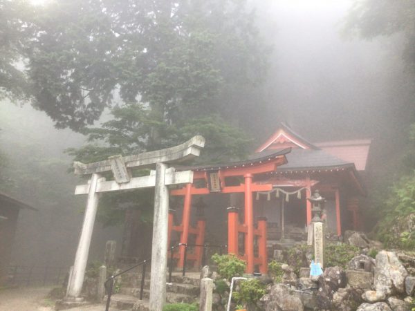 こちらは朝6時の大江山、鬼嶽稲荷神社前です。霧に包まれ神秘的です。