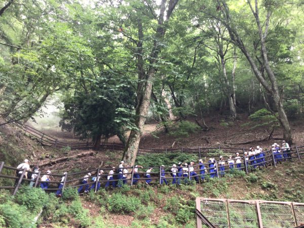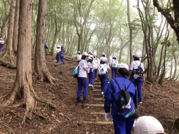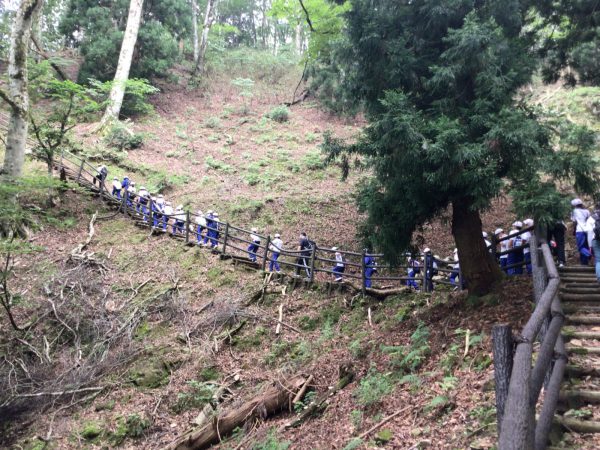 急な山道の階段が続きます。今回の登山の中で最も急な坂の一つです。