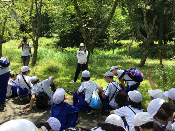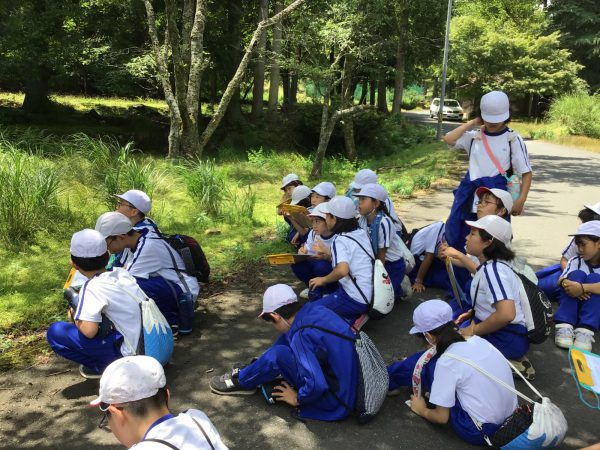 歩くのは大変でしたが、道中を楽しみました。また、先生に教えてもらって、笹舟を作る子どもたちもいました。