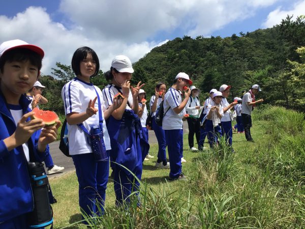 校長先生がロッジから運んでくれた冷えたスイカを、頂きました!