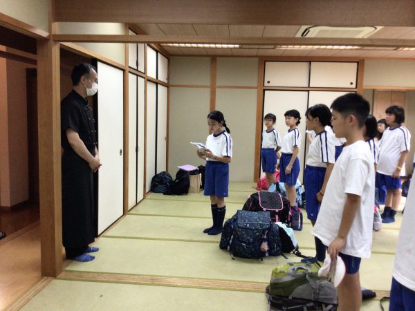 子どもたちは、トイレのスリッパを当たり前のようにそろえたり、水回りを進んで掃いたりできました。また、丁寧に布団をたたんで整頓するなど、文教キッズらしい行動が多く見られました。