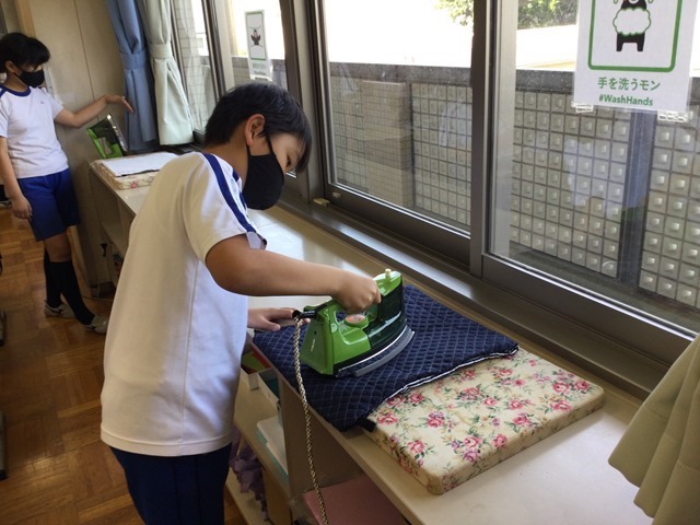 最終のステージは「アイロンシール」を付けるための“アイロンがけ”と“ひも通し”です。