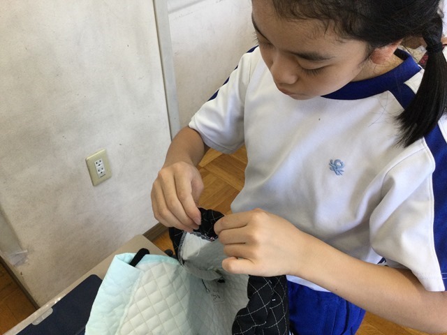 家庭科「仕上げよう!ナップザック」