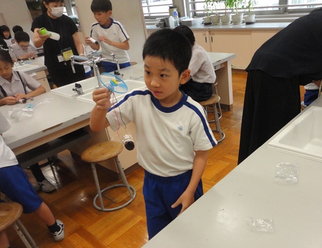 本当に、炭と身近な材料だけで、モーターを回すことができました!