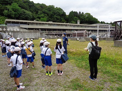 子ども達が、心待ちにしていた浄水場見学。雨が心配されましたが、皆の願いが届いたのか、予定通り見学できました。