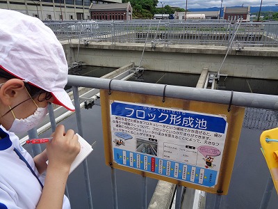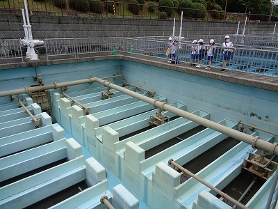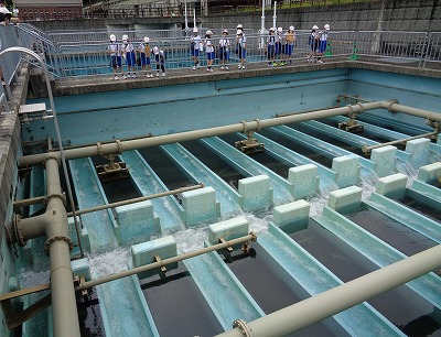 水の流れる音、注入される薬品のしずくの音を自分の耳で聞き、また、一つの役割の「池」が最高で14も並んでいるのを自分の目で確認し、広い浄水場施設内を自分の足で歩き……と机上の学習だけでなく、体験を伴い五感を通して学ぶ貴重な機会を得られました。