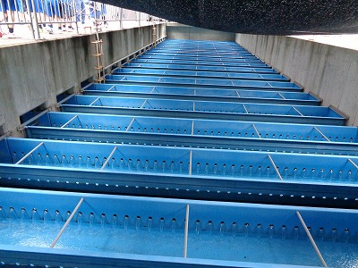 ゴミはかたまり(フロック)となり、傾きのある板をスライドしながら効率的に沈殿していきます。