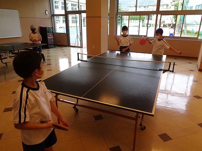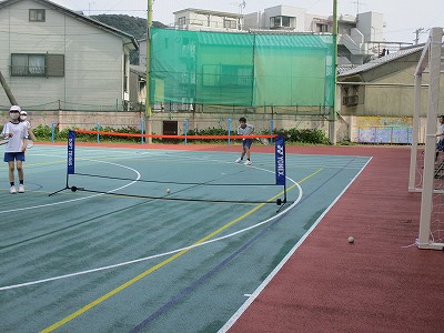 ボールゲームクラブでは、今期初めてのラケットベースボールに取り組みました。ラケットのネットに、ボールをうまくヒットさせるのが少し難しそうでした。