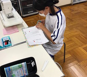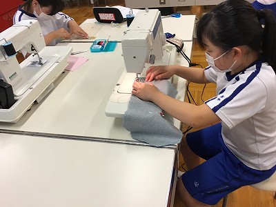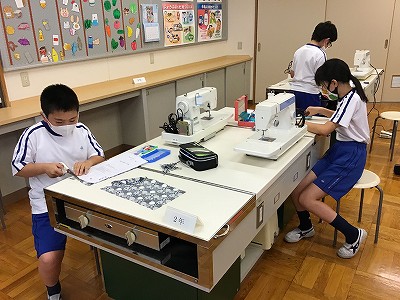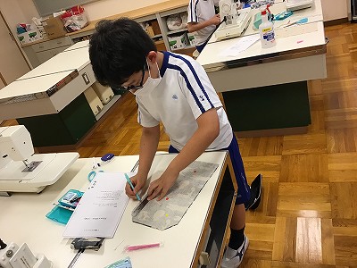 いよいよ、ミシンをかけていきます。前回の雑巾づくりを思い出しながら、慎重に、丁寧にミシンを扱うことができています。