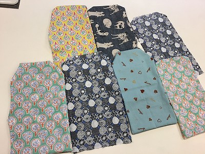 今日は、中表にした布のまわりを縫って、中表になっているのをひっくり返すところまで行いました。