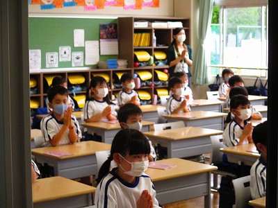 私は低学年の教室で放送を聞きましたが、子ども達は同じように「ありがとうございました。」と担任の先生に促されて言ったわけでもなく、しっかり返答できていました。あたり前のことかもしれませんが、感心してその様子を見ていました。