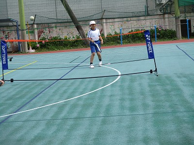 慣れてきた人は、ダブルスの試合を楽しみました。