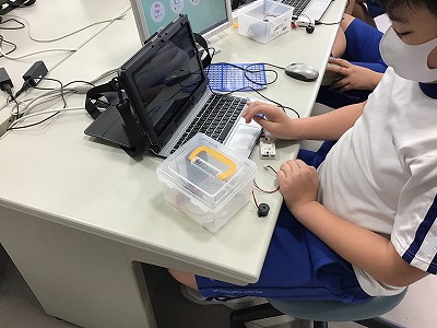 プログラミングクラブは、光センサーを利用して、「暗くなったらLEDが光る」プログラムに挑戦中です。