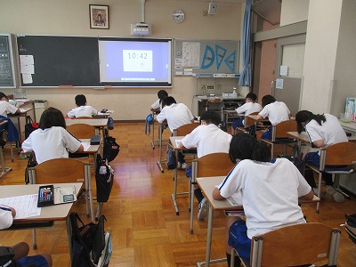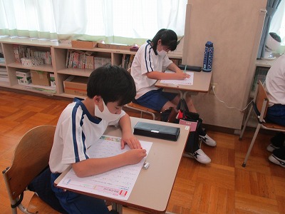 自分の練習の成果が試されていると感じたのか、テスト開始の合図とともに、テスト用紙に向かう5年生の姿が見られました。