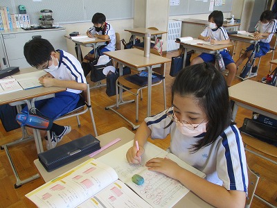 国語の時間には、漢字テストを実施しました。1学期のまとめテストです。