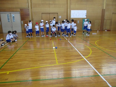 今日も、「ボッチャ大会」が開催され、体育館にれんげ班のメンバーの歓声が響きました。