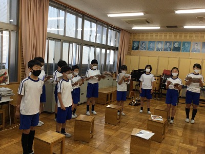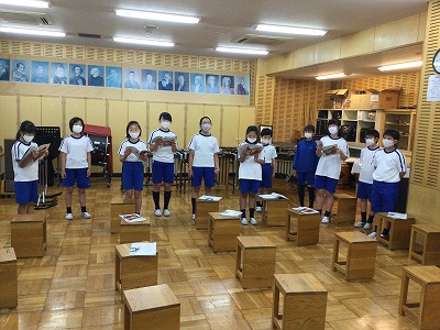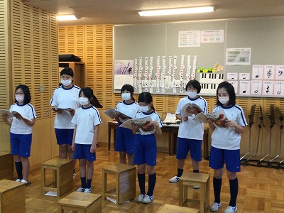 「♪ハローシャイニングブルー」の二部合唱に取り組んでいます。