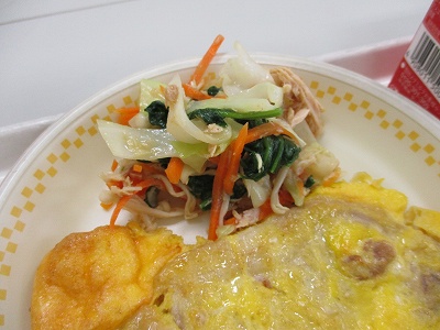 ☆ 豚肉のピカタは豚のロース肉を使いました。豚肉は疲労回復に効果があるビタミンB1を豊富に含んだ食べ物で、夏の暑さで疲れた体に最適な食べ物です。チーズをまぜた卵液にくぐらせて焼くと、見た目にはわかりにくいですが、チーズのよい香りがしていました。