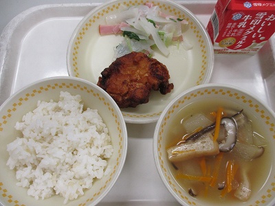 ☆ とりの香味揚げは、とりの胸肉を使っています。胸肉は筋肉や体をつくるために欠かせない「たんぱく質」の多い部分です。
