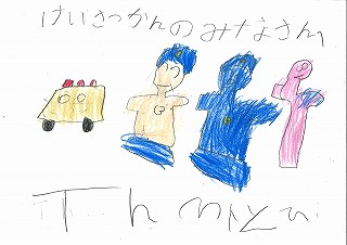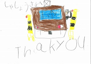 今週は1年生からのメッセージです。英語の授業で、いろいろなお仕事の英語名に触れたあと、"Thank you"を添えて仕上げました。