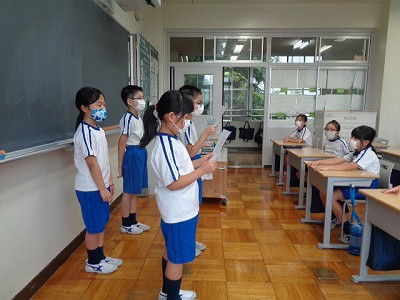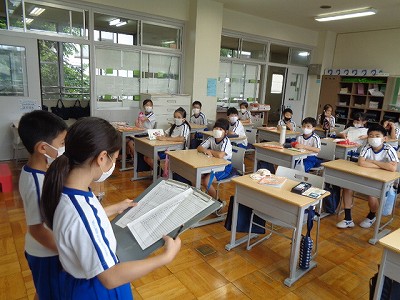 1週間がスタートしました。今週は、保健係さんが毎日ハンカチチェックをします。チェックの後は、みんなに報告をしっかりしてくれました。