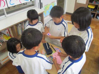 来週のお楽しみ会に向けて、係ごとに集まって準備をしています。