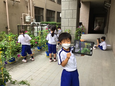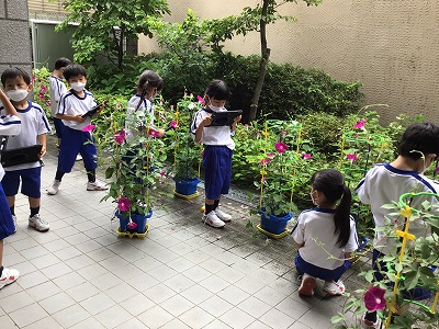 来週の個人懇談会の日に持ち帰ります。とても立派に育っていますので、大きめの袋をご持参ください。小学校の玄関前に並べて置いています。