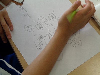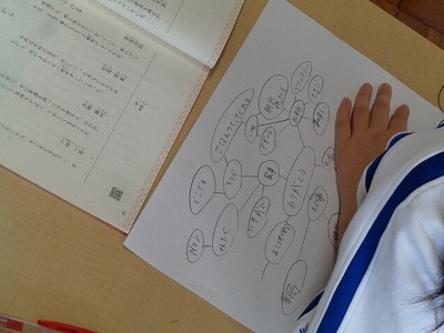 テーマは「ありがとう」です。マインドマップを使って、「ありがとう」からいろんなイメージを広げていきます。