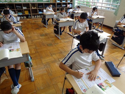 4時間目の国語の授業では、「一つの花」の確認テストを行いました。
