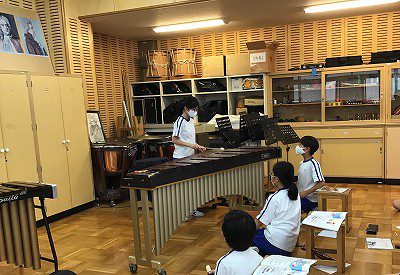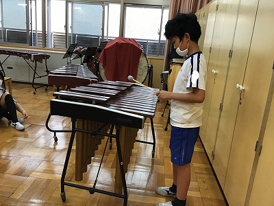音楽室には、もう1台、“低音”をになってくれる“マリンバ”が存在します。“マレット”を替えて打つと、さらに音色も柔らかくなりました。