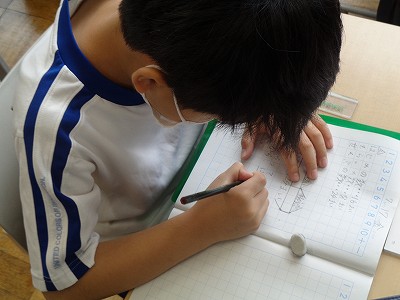 最初の文に数が書かれていないことで戸惑うことはありましたが、しっかり話を聞いて、練習問題に取り組んでいます。