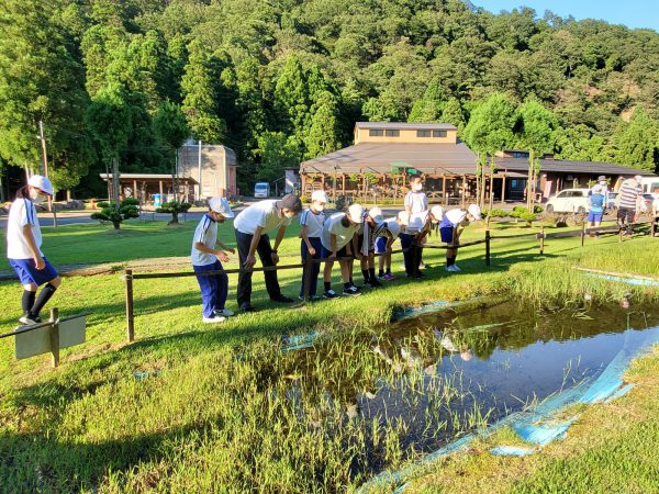 ロケット遊びを楽しんだ後は、ロッジ前のビオトープへ行きました。