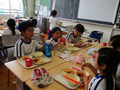 今日から木曜日まで、縦割りれんげ班の1~6年生が、 和気あいあいと一緒に食べる「れんげスクールランチ」を実施中です。