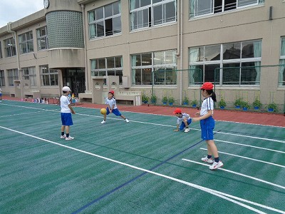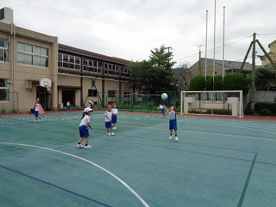体育館とちがって広いので、チームメンバーで広がって思い切り体を動かせていました。