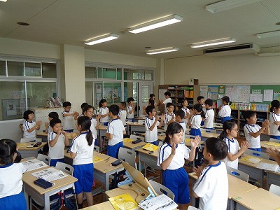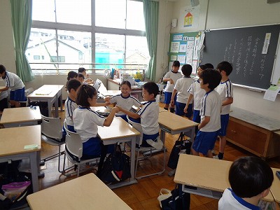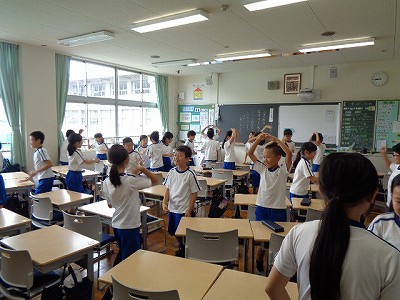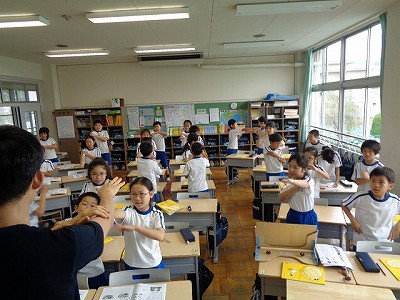 英語の授業でも、歌に合わせて~、となると、一気に盛り上がる子ども達です。
