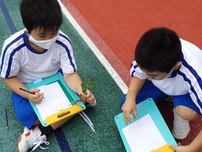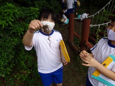 根っこの観察をする子ども達の1枚です。