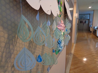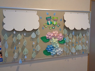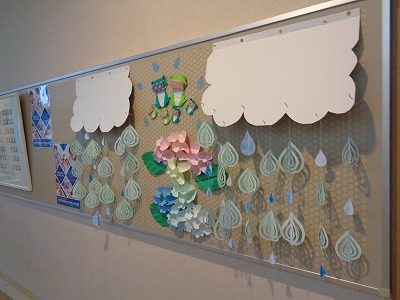6月、梅雨に入ってから、一階廊下には、そんな雨模様の掲示をしています。