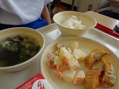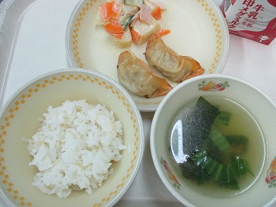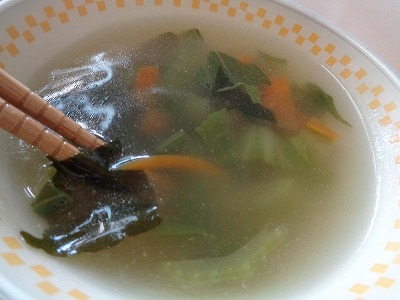 チンゲン菜は中国から日本に伝わった野菜です。白菜の仲間でシャキシャキと少し甘みのある野菜です。煮崩れしにくいので、扱いやすくいろいろな料理に使われます。給食では繊維を断つように、細目に切ると苦手な人でも食べやすくなります。